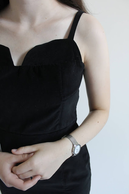 I actually wasn't sure about the fabric whilst making the dress. Something about it felt quite underwhelming, maybe because of how plain it is. I also initially added a lining which really didn't work: the velvet has a slight stretch to it but the lining fabric I bought wouldn't budge when I put it on, making the dress much too small. There was a moment of panic when I tried it on with the lining and couldn't get it on, but luckily the dress fit perfectly once I removed the lining!